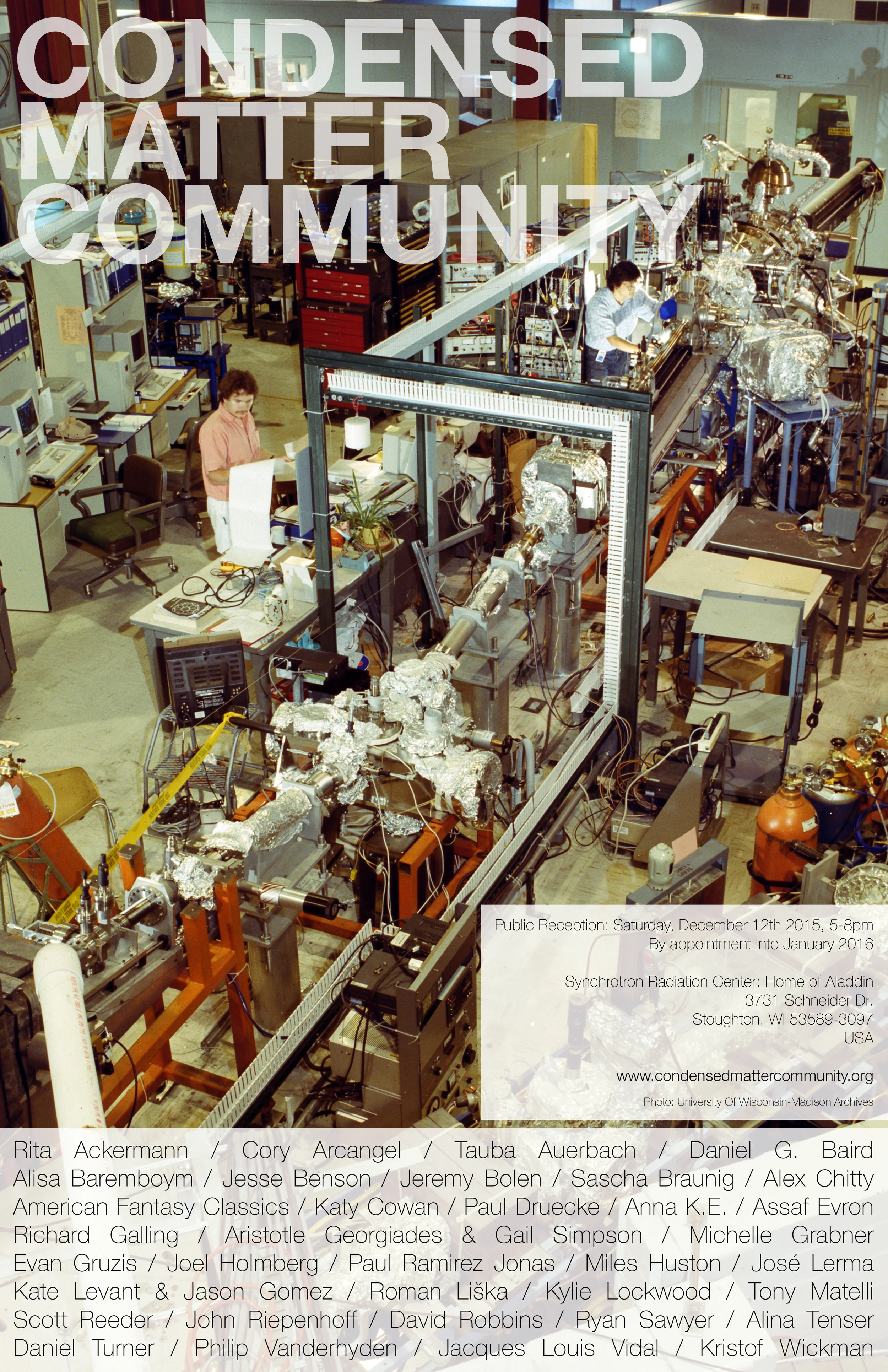 Condensed Matter Community was a site-specific curatorial project organized by Kristof Wickman and Evan Gruzis intended to generate a dialogue about science, aesthetics, progress and entropy. The project used the site of a decommissioned particle accelerator facility in rural Wisconsin, The Synchrotron Radiation Center: Home of Aladdin, as an exhibition space to frame a selection of artworks, prior to forthcoming experiments.